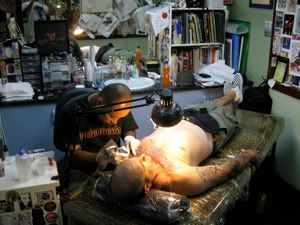 My brother got another tatt from Mr Yoneyama at Tattoo Magic last night.